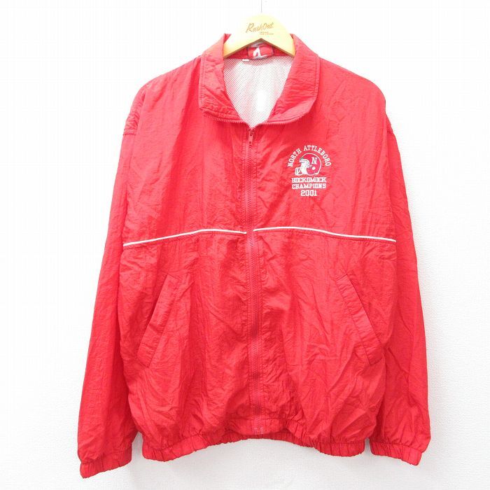 > L/古着 長袖 ナイロン ジャケット メンズ 00s ノースアトルボロ フットボール 8 赤 レッド 内側メッシュ 25sep26 中古 アウター ウインドブ
