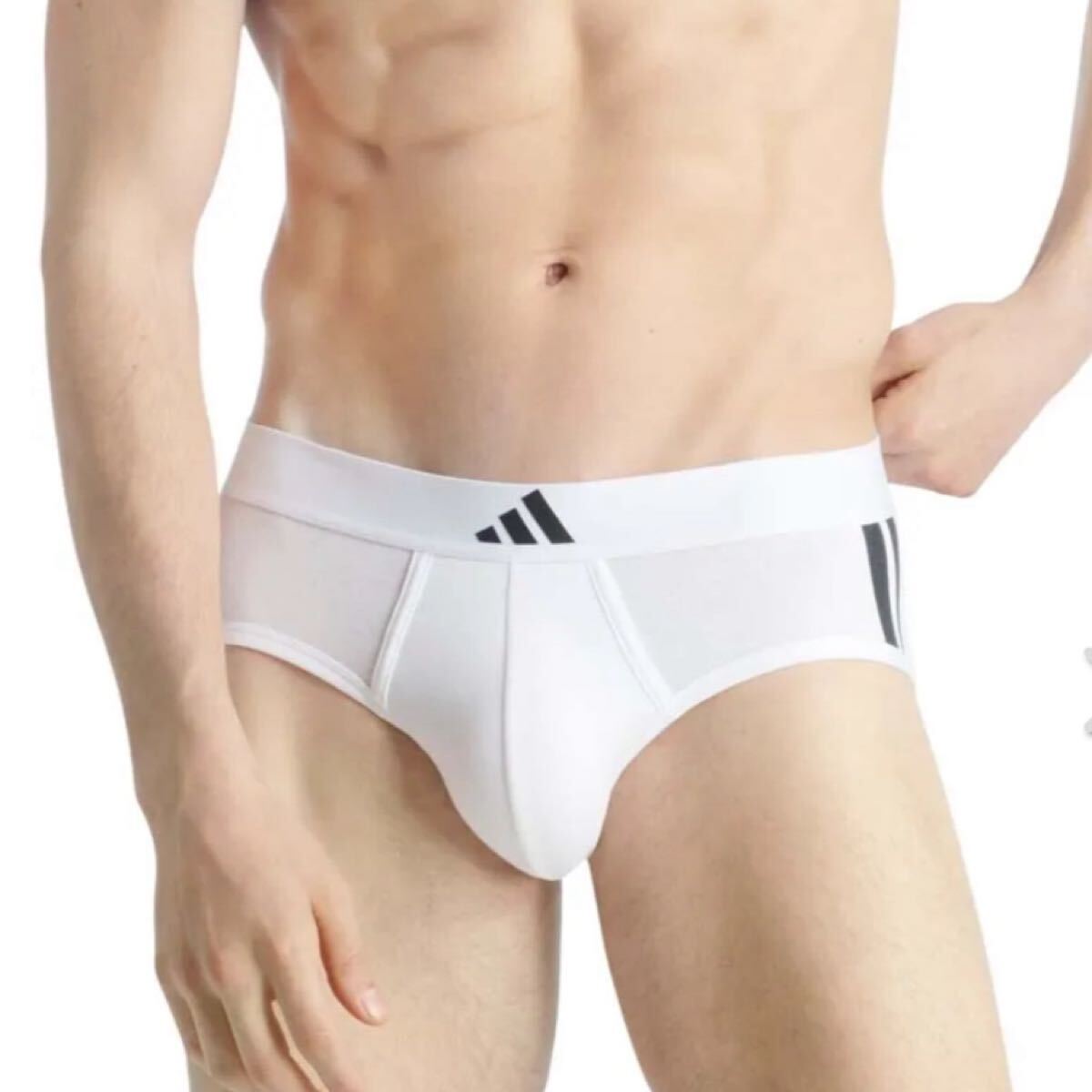 > adidas アディダス メンズビキニ L(M) ホワイト 白ブリーフ コットンストレッチ ストライプ ビキニブリーフ メンズインナー
