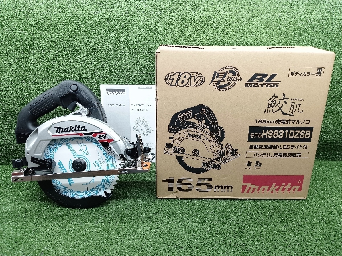- 未使用品 makita マキタ 18V 165mm 充電式マルノコ 本体のみ 鮫肌 黒 ブラック HS631DZSB ①