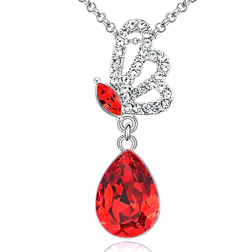 > 新品★送料無料★蝶と雫 紅玉ルビー ダイヤモンドプラチナ仕上 925シルバーネックレス誕生日プレゼント旅行連休秋祭冬ギフト国内発送