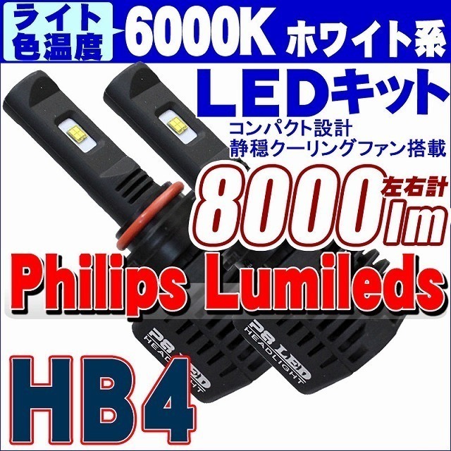> 【6000K】フィリップスLEDキット 8000lm(左右計) HB4 静音省スペースファン ヘッドライト フォグランプ 12V/24V