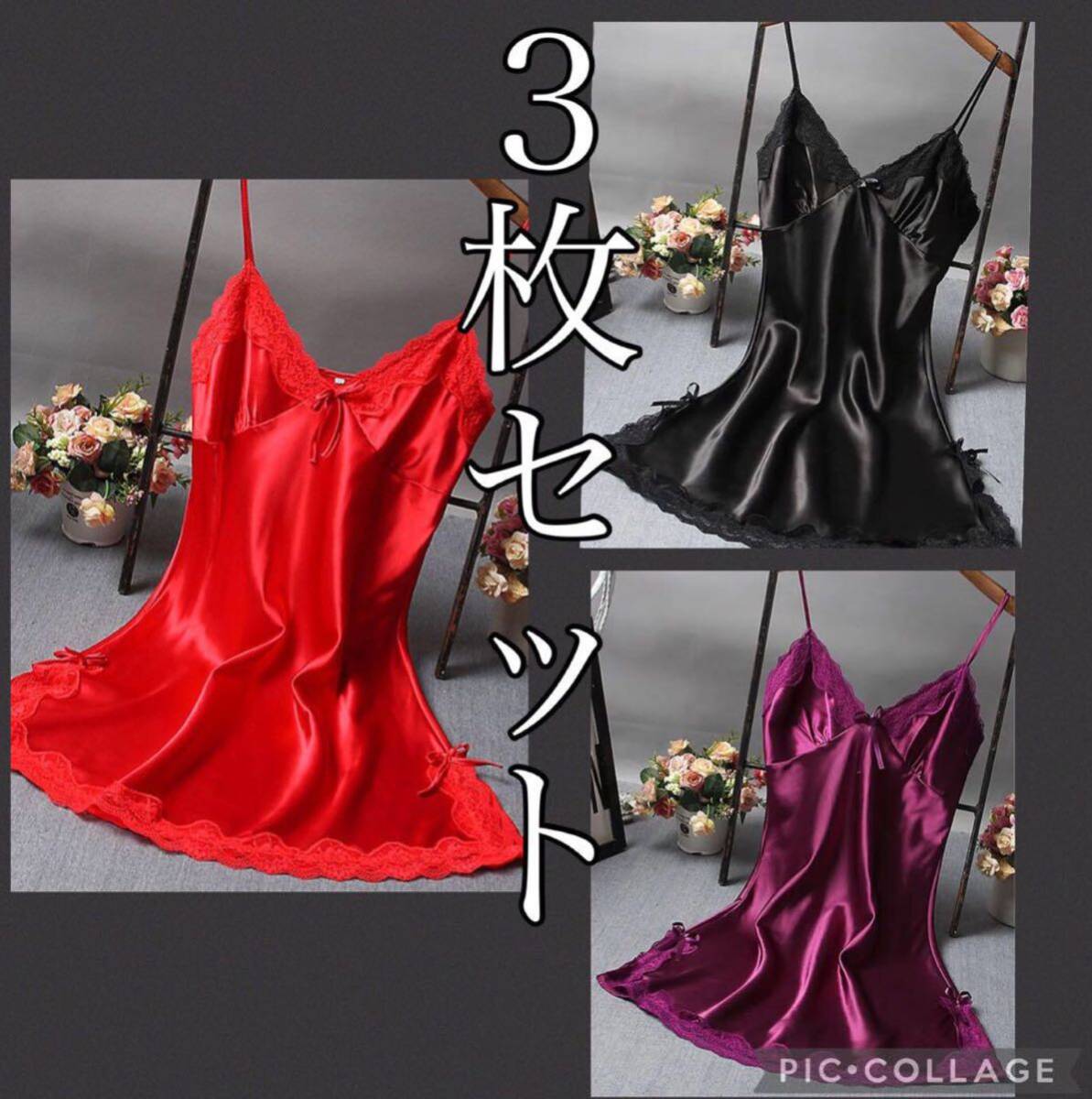 - ベビードール セクシーランジェリー キャミソール パジャマ ネグリジェ 3枚セット 送料無料 衣類で発送 中身がわからない梱包