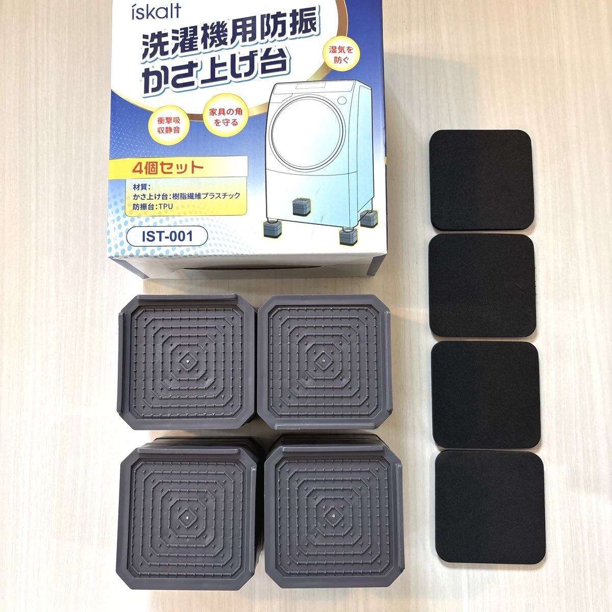 - ISKALT 洗濯機用防振かさ上げ台 高さ調節 洗濯機・乾燥機・冷蔵庫 取り外し可能 滑り止め 傷防止 耐荷重約2000kg 異音・振動吸収 (4個入)