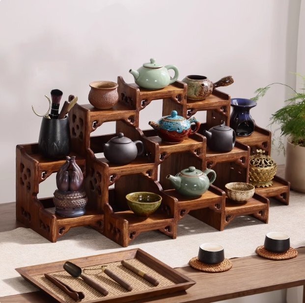 - 13格中国式デスクトップ小型博古棚実木急須展示棚紫砂壺棚茶器置物棚置物置物