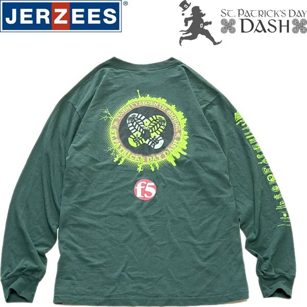 > 1点物◆ジャージーズ深緑バックプリント長袖ロンTシャツ古着メンズLレディースOKアメカジ90sストリート/スポーツ中古ブランドUSA362091