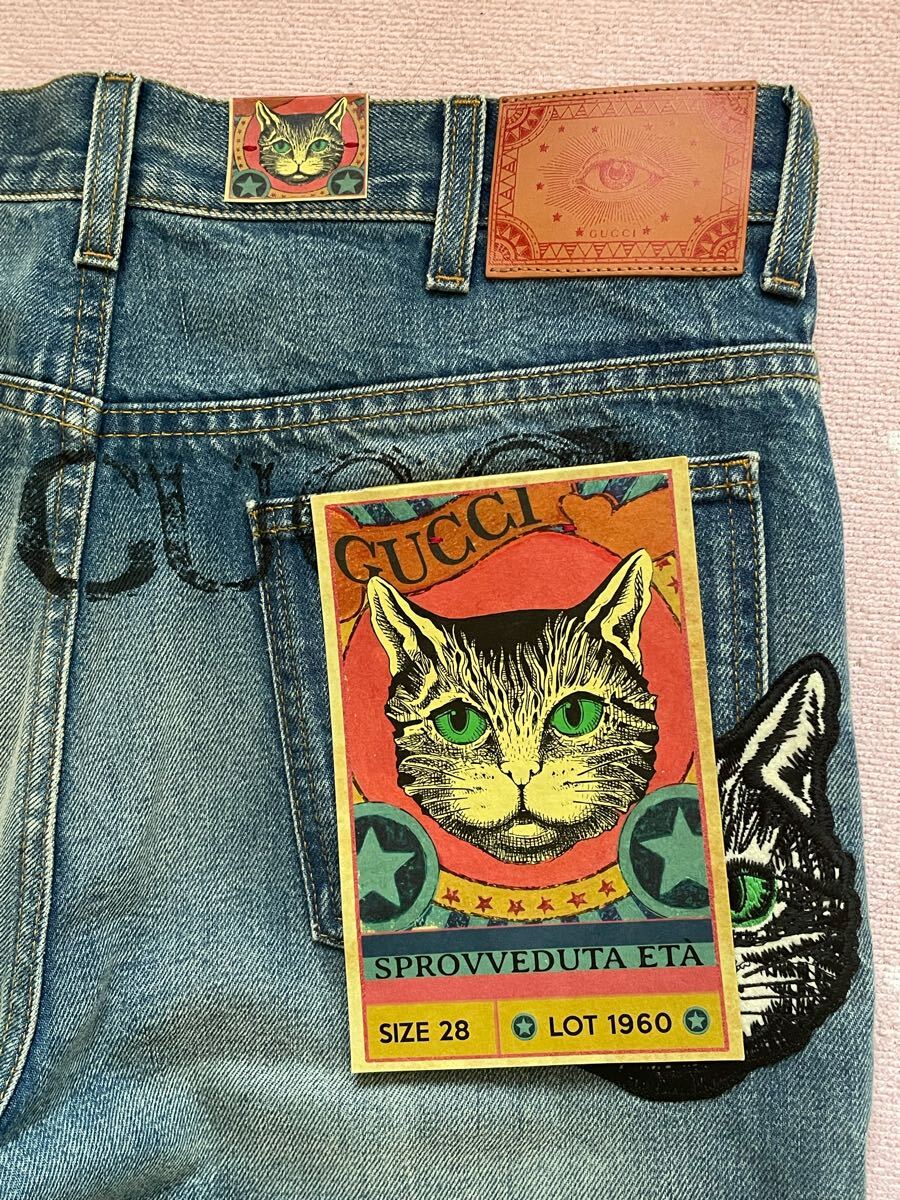 - 未着用★GUCCI★ミスティックキャット★刺繍デニム★紙タグ付き★28