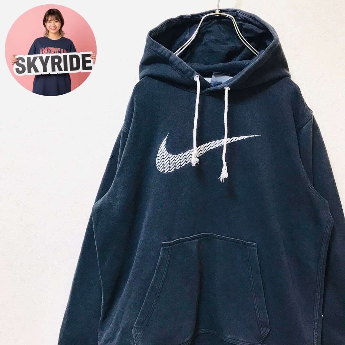 > 【人気】NIKE ナイキ 2010s スウェットパーカー ブラック Mサイズ スウッシュ刺繍 コットン80% ゆるだぼ ストリート 古着 #TT0364