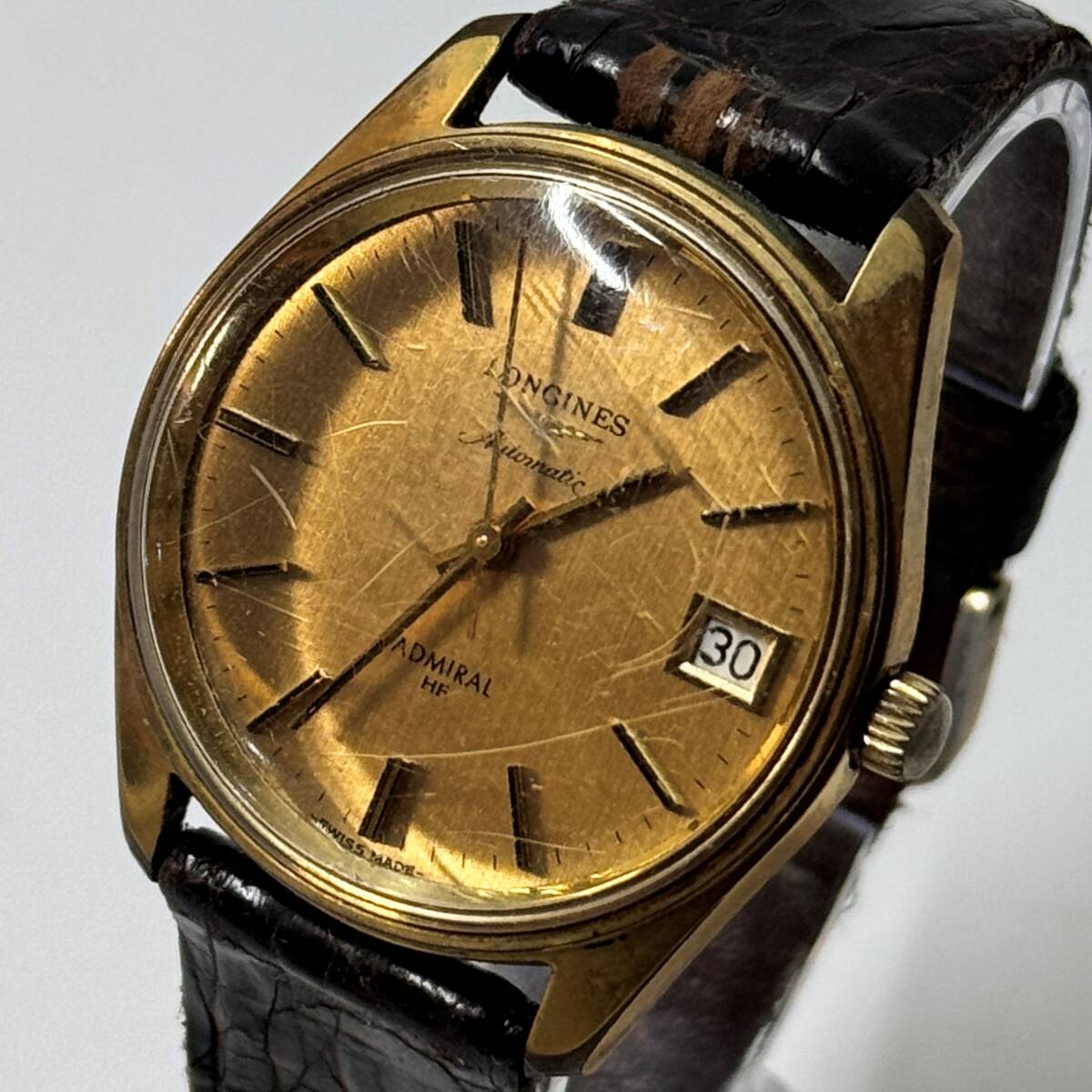 > 【63991Q】稼働品 LONGIEN ロンジン オートマチック ADMIRAL アドミラル HF 自動巻き レザーベルト メンズ 腕時計 経年保管品 現状品