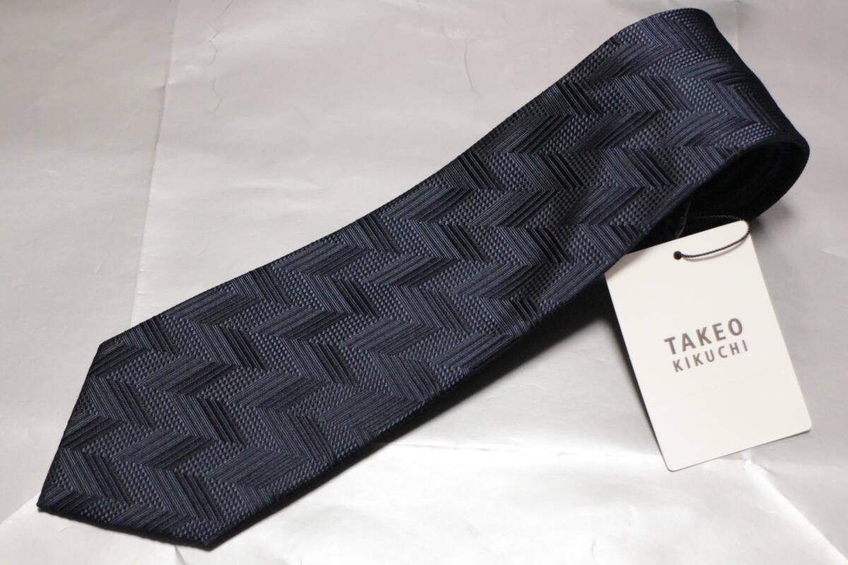 - タケオキクチ新品ネクタイ極上西陣織ネイビーソリッドジャガード矢筈ヘリンボーン織ハンドメイド限定プロダクトノーツライン日本製