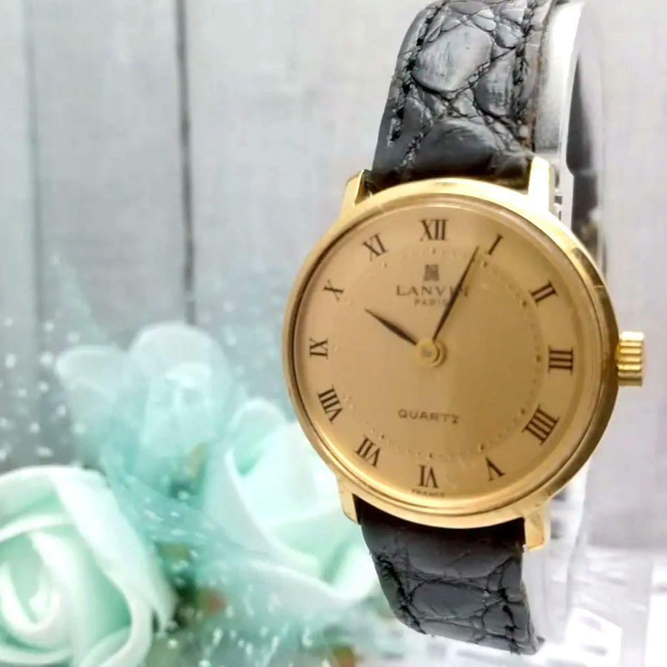- 稼働品 希少 ランバン レディース 腕時計 ローマンインデックス