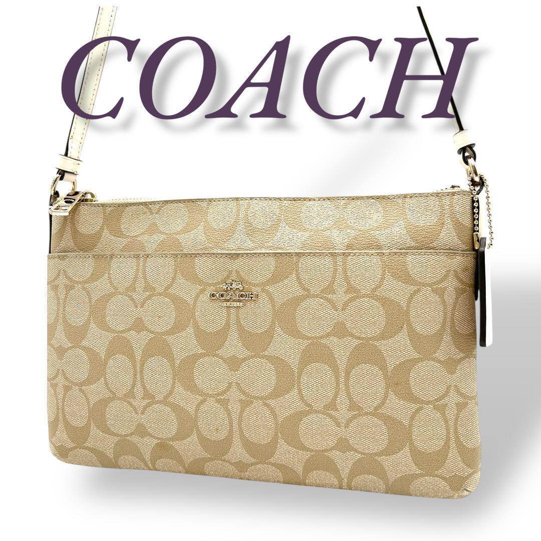 > 【大人気】COACH コーチ PVC ショルダーバック ベージュ 美品 レザー ショルダーバッグ PVCレザー 大人気モデル