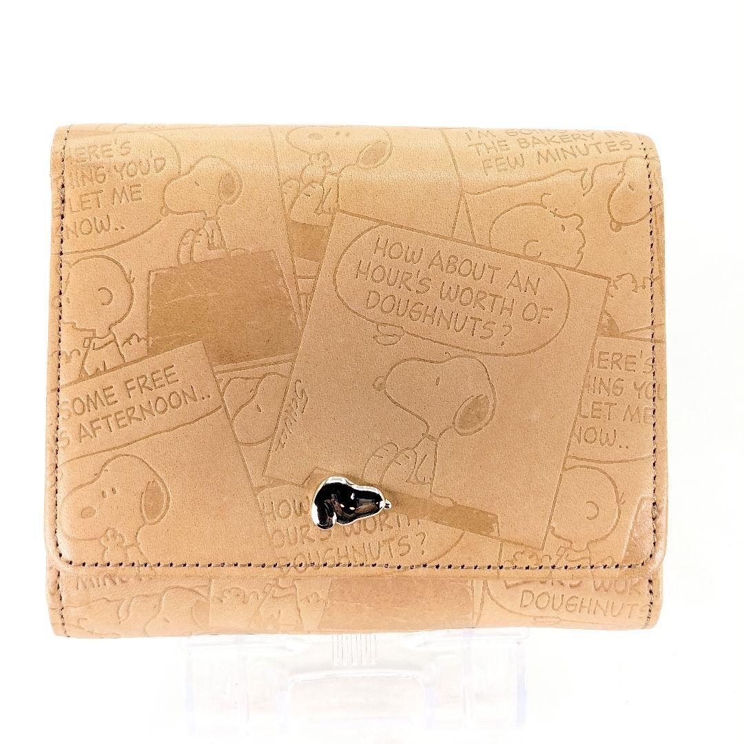 - 未使用 スヌーピー 本革 二つ折り財布 ヌメ革 レザー ウォレット
