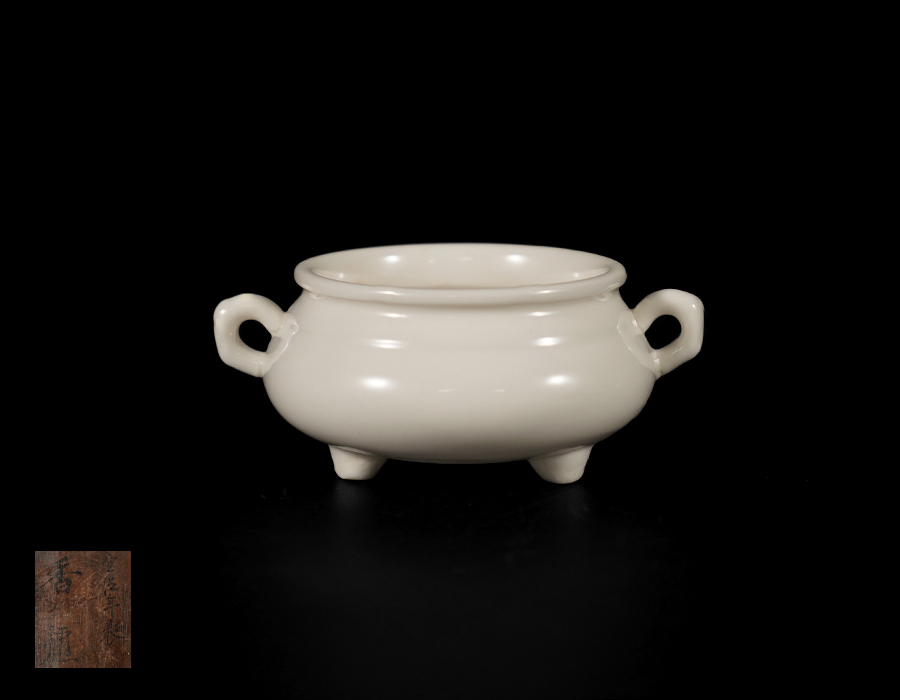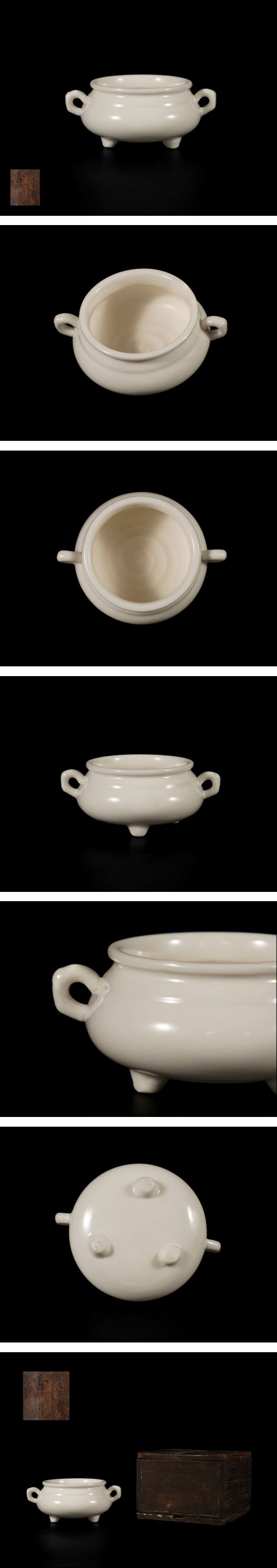 > 【簡】唐物 清代 徳化 白磁 双耳 三足 香炉 (検: 古渡 白釉 香爐 白瓷 白南京 白高麗 徳化窯 香道具 茶道具 中国古玩 骨董 古美術 品)