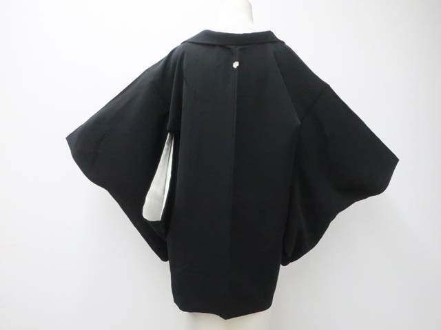 > 《古美術京松》リサイクル着物 黒羽織 羽織 一つ紋 地紋入り 羽織紐別売り 正絹 身丈79.5cm 裄丈約64.5cm kyo7z09-1026