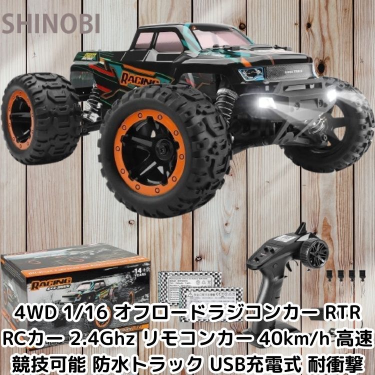 - 4WD 1/16スケール オフロードラジコンカー RTR RCカー 2.4Ghz リモコンカー 40km/h 高速 競技可能 防水トラック USB充電式 耐衝撃