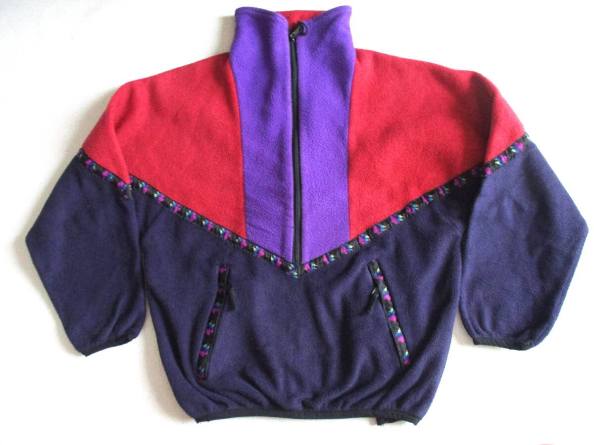 - 西ドイツ製★ L ジャックウルフスキン★ ハーフJIPフリースジャケット★ アウトドア 紫×赤×紺