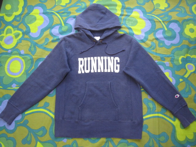 > Champion チャンピオン リバースウィーブ 青タグ パーカー ネイビー/ホワイト サイズM 綿90/ポリエステル10 USEDキレイ 古着 単色タグ 復刻