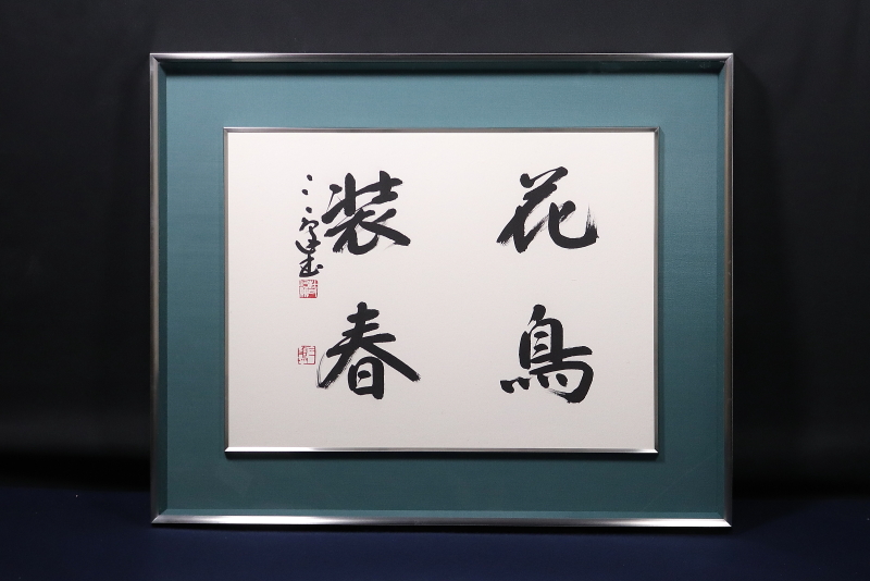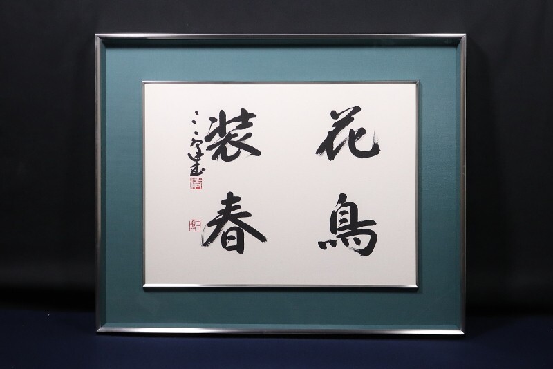 - 11051■【真作】村上三島 書 「花鳥装春」 肉筆 若年期の作 現代書家 辻本史邑師事 額装
