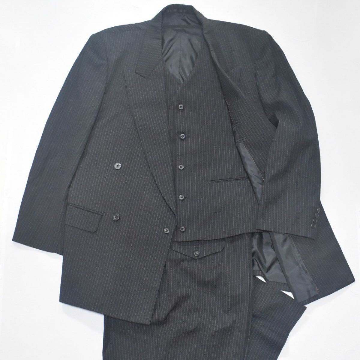 - GROSSO スリーピース セットアップ ダブルブレスト 黒 立体ジャガード織 大きめ L〜XL相当 菅田将暉好きに ストライプ