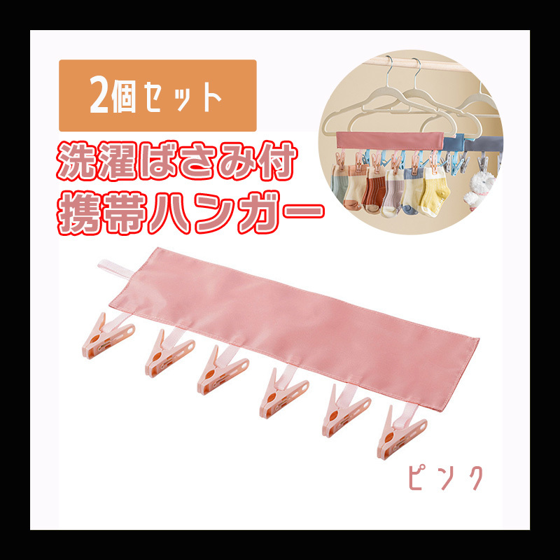- 物干し 洗濯バサミ ピンク 2個セット ピンチハンガー 携帯 宿泊 靴下 洗濯 持ち運び 旅行 合宿 宿泊