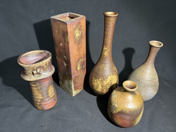 - 【Y8-10】備前焼 花瓶 酒器 在銘 まとめて5点 花入 徳利 旧家整理品
