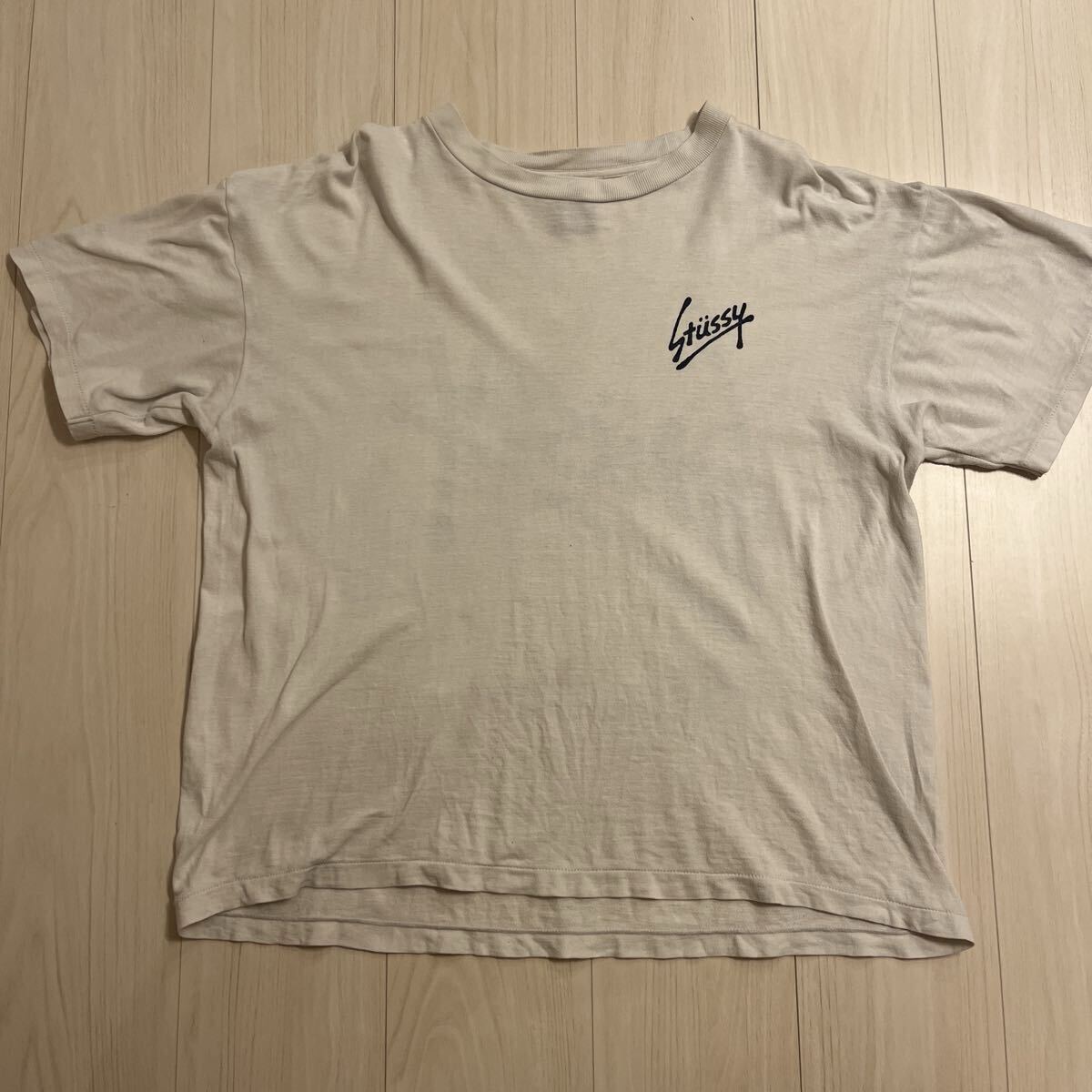 - 1円スタート Stussy ステューシー アメリカ製 シングルステッチ 90s ビンテージ メンズ古着 USA製 Tシャツ Lサイズ ホワイト