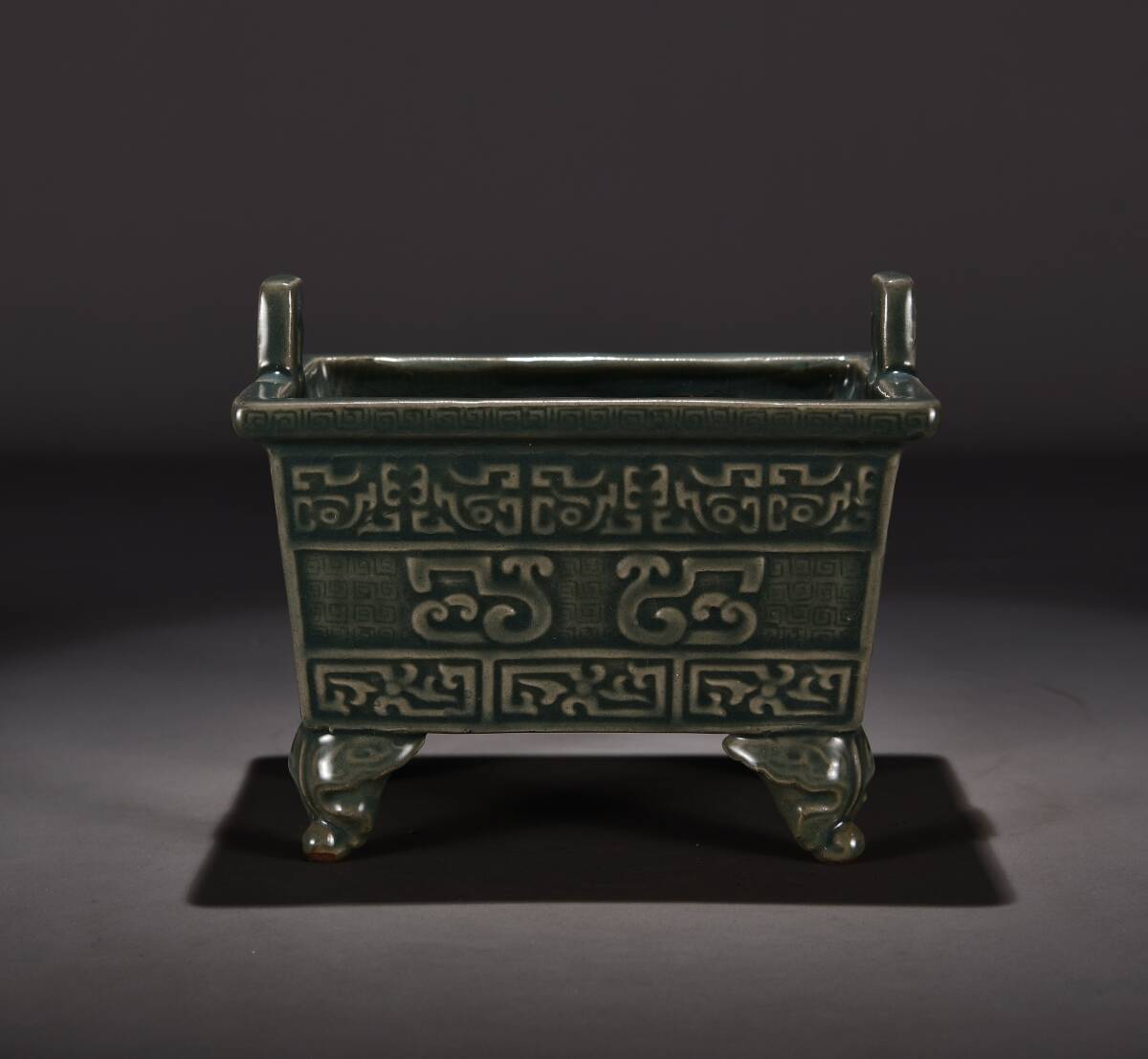 - 【超珍館蔵】宋 古陶瓷品 越窯 秘色釉 饕餮紋 鼎香爐 陶藝 古賞物 古董品 古美術品 時代物 旧家蔵出 稀少珍蔵品