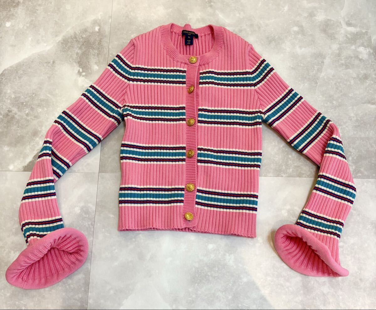- ルイヴィトンLOUIS VUITTON ピンクストライプカーディガン XL美品