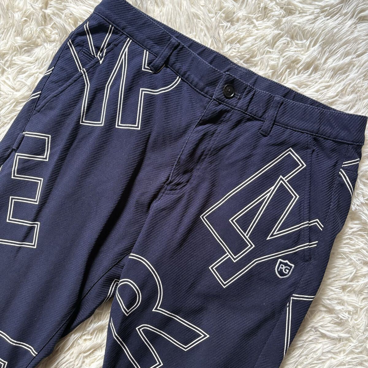 - 極美品/希少XL相当◎PEARLY GATES パーリーゲイツ パンツ ロゴ総柄 リンクスジャガード ストレッチ ニット 軽量 メンズ ゴルフ ネイビー 6