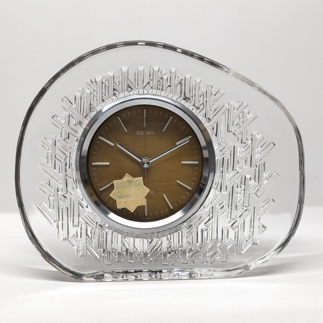 - セイコー SEIKO クリスタル 置時計 和 和洋折衷 モダン 当時物 未使用品 ガラス製