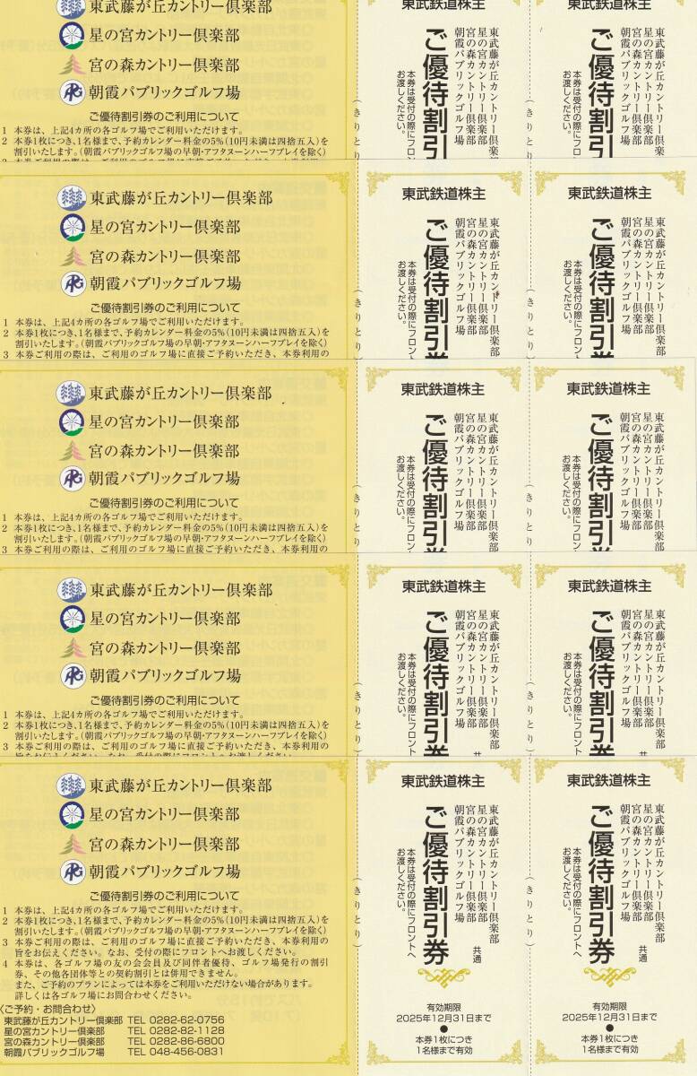 - 東武鉄道株主★東武藤が丘カントリー倶楽部 星の宮カントリー倶楽部 宮の森カントリー倶楽部★ゴルフ場割引券★5シート(10枚セット)