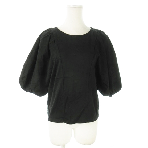 > スナイデル SNIDEL ボリュームスリーブカットソー ラウンドネック 五分袖 ドルマン ストレッチ バルーン F 黒 ブラック /AO8