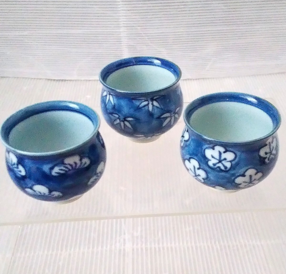 - 館林源右衛門 源右衛門窯 古染風 松竹梅 ぐい呑 盃 3客セット 源右衛門窯 源右衛門 げんえもん
