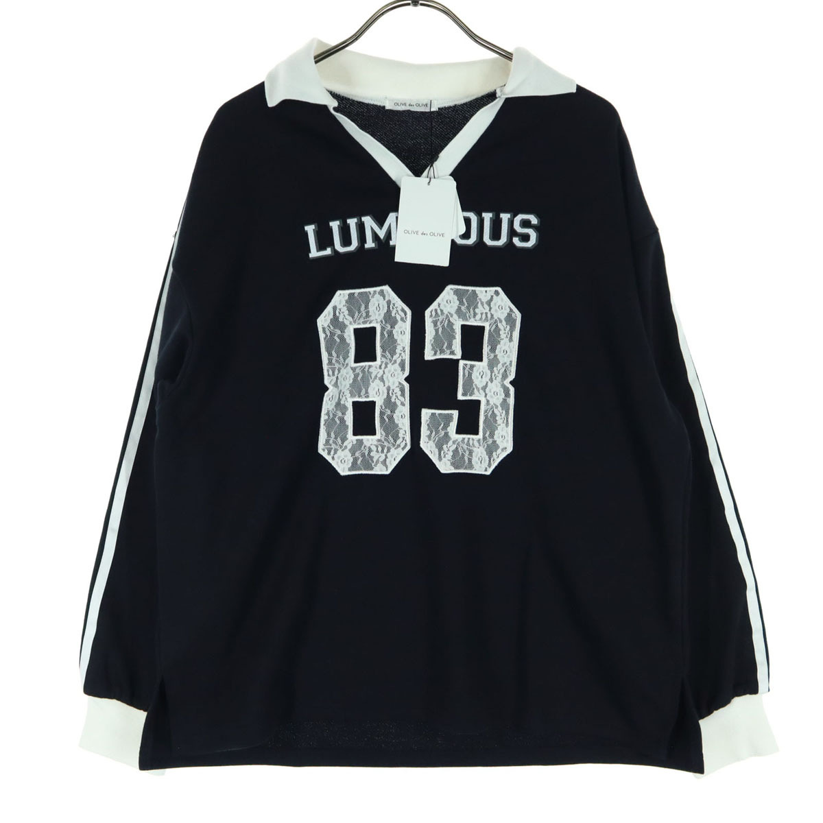 - 未使用 OLIVE des OLIVE オリーブデオリーブ 英字 長袖 スキッパー トレーナー F ブラック レディース
