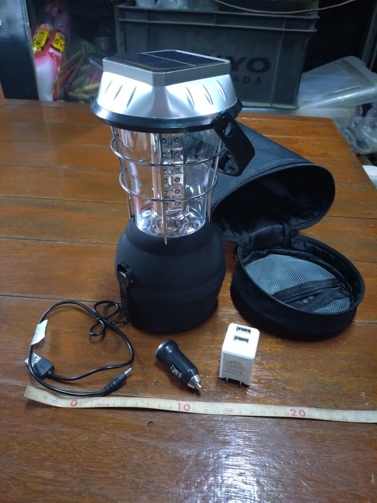 > USB 12Vシガー ソーラー 電池 手巻き発電等☆LED・充電式ランタン 美品USED