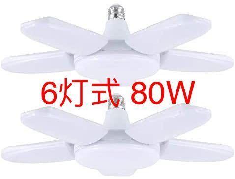 > 2個セット 6灯式 80W LEDシーリングライト ガレージライト led E26/E27 LED電球 昼白色 6500K ペンダントライト 天井照明 ダイニング