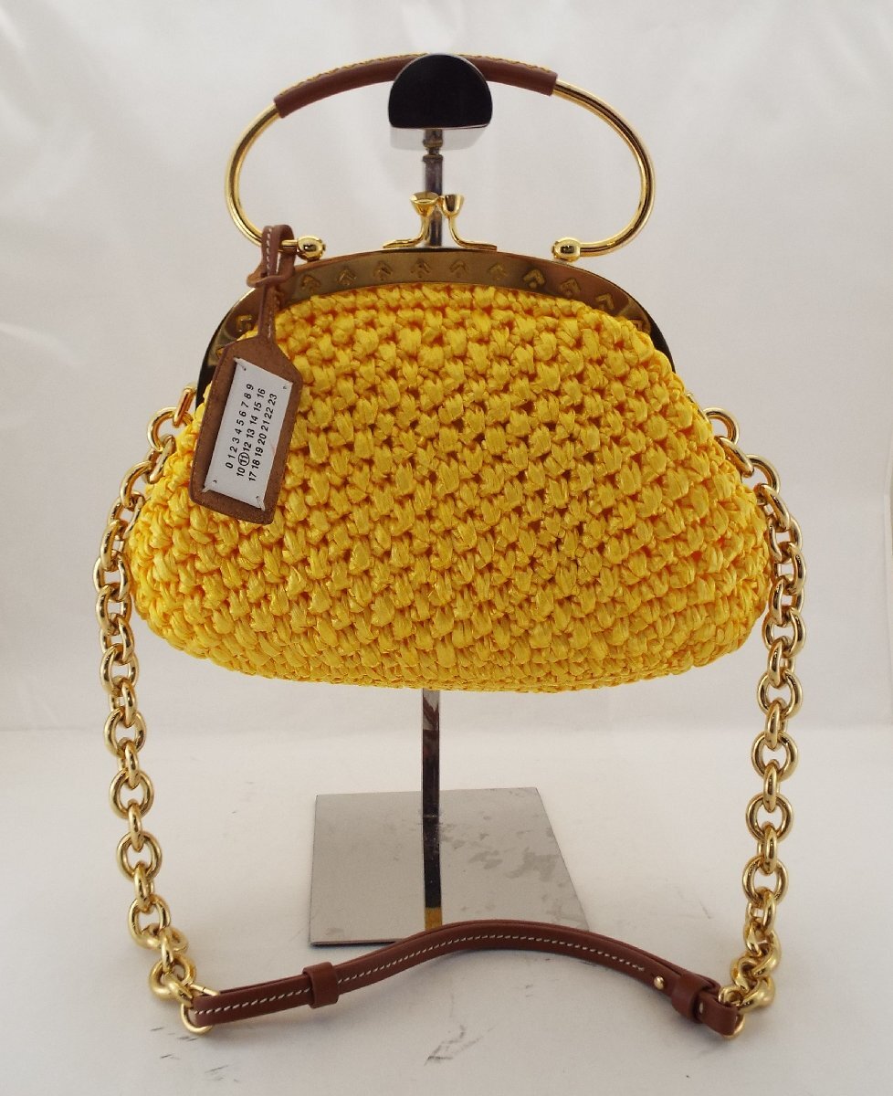 - D674〇MAISON MARGIELA(メゾンマルジェラ)RAFFIA S.W.A.L.K. II 2WAY ラフィア ハンドバッグ がま口 チェーン イエロー S56WD0130