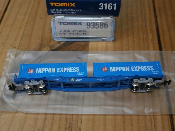 > (貨物編3籠) 新品 93586 コキ104-10001 青色 1両 + 3161 日通 NIPPON EXPRESS 2個 ばらし TOMIX 〔トミックス〕