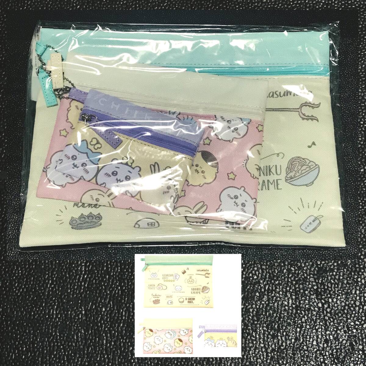 - ちいかわ キーホルダー 3連ポーチ 仲間がいっぱい ハチワレ モモンガ くりまんじゅう うさぎ ガチャ カプセル ちいかわらんど くじ ナガノ