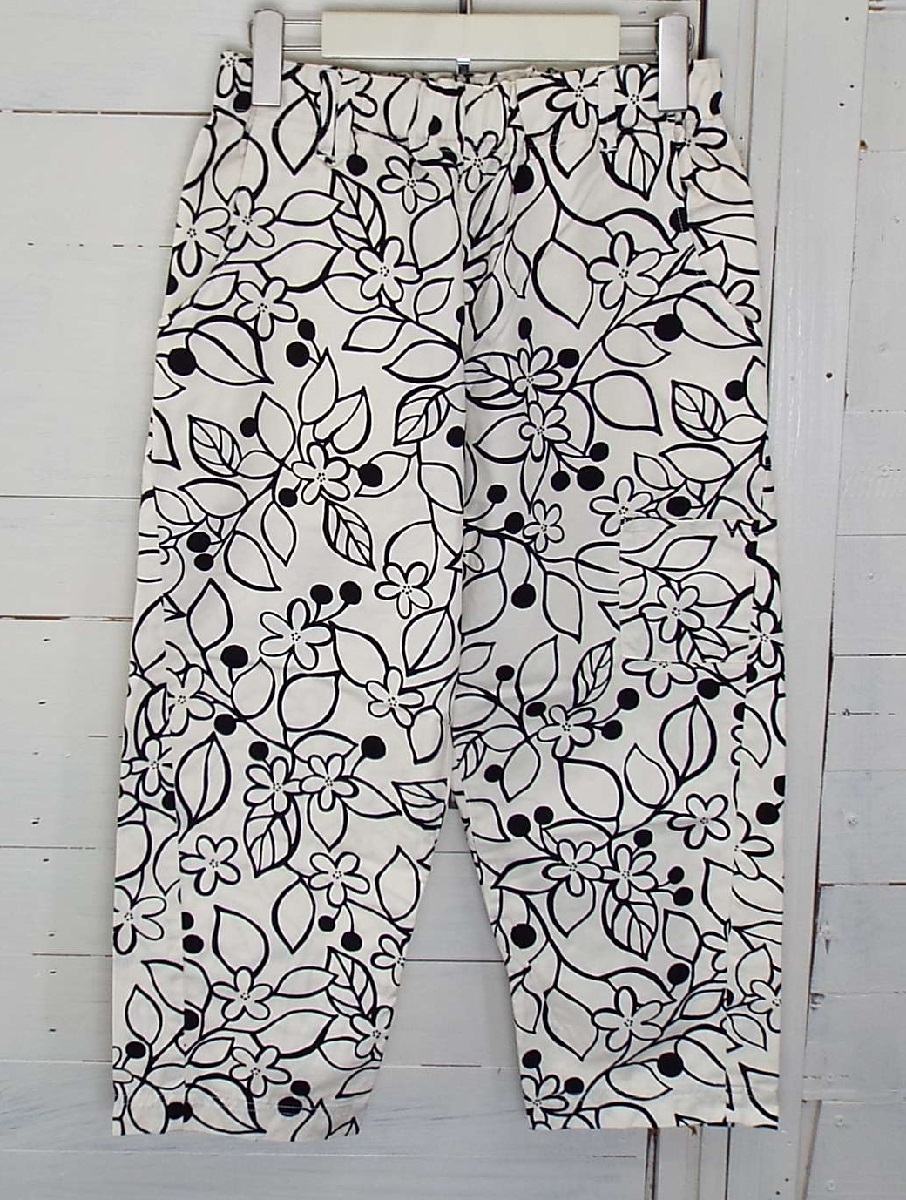 > T3134〇VOO(ヴォー)クロップドパンツ イージーパンツ フラワープリント 花柄 総柄 ホワイト系 サイズ1 サンプル品 品質タグ無し