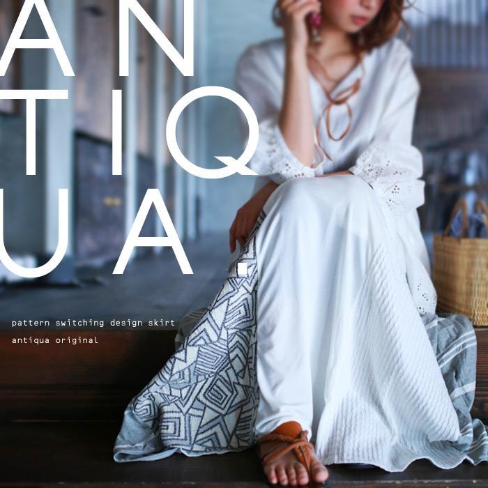 > アンティカantiqua★『異素材と柄、贅沢に華やぐ。』着たいに寄り添う。異素材切り替えotonaフレアリブロングスカート