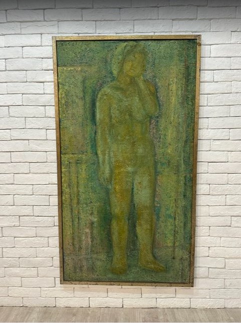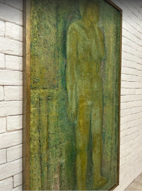 - 5241 141cm 油絵 大判 巨大 人物像 ペイント 芸術 美品 レトロ ビンテージ アンティーク カフェ 店舗 レストラン bbb