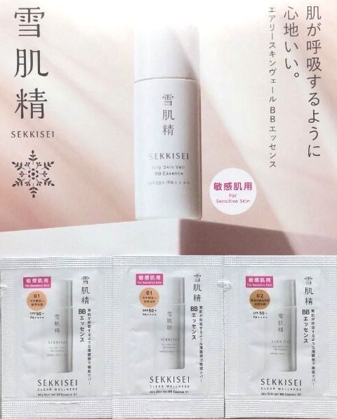 > 雪肌精★クリアウェルネス エアリースキンヴェール BBエッセンス 01 & 02 サンプル 敏感肌