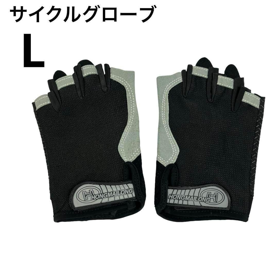 - サイクリング グローブ ハーフフィンガー 男女兼用 自転車 手袋 黒 Lサイズ