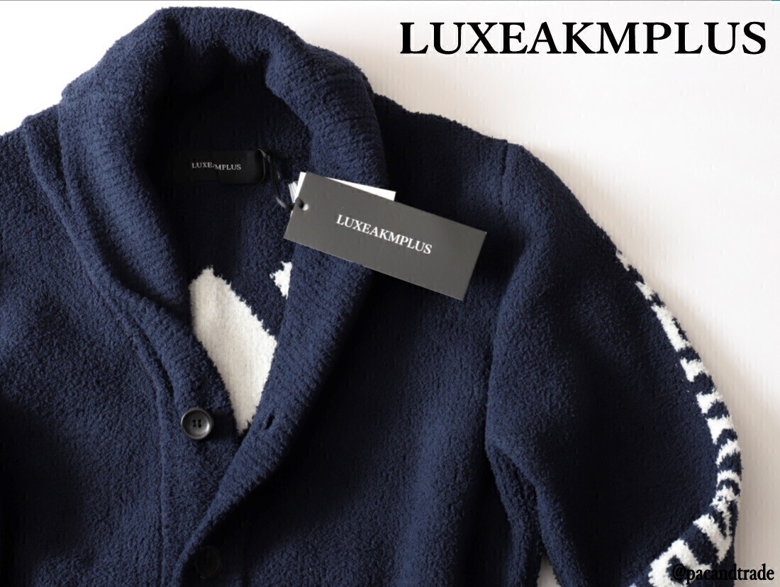 - 1円 LEON★LUXEAKMPLUS リュクスエイケイエムプラス★サイドロゴショールカラーニットカーディガン【lak-22007】ネイビー紺★サイズ選択M/L