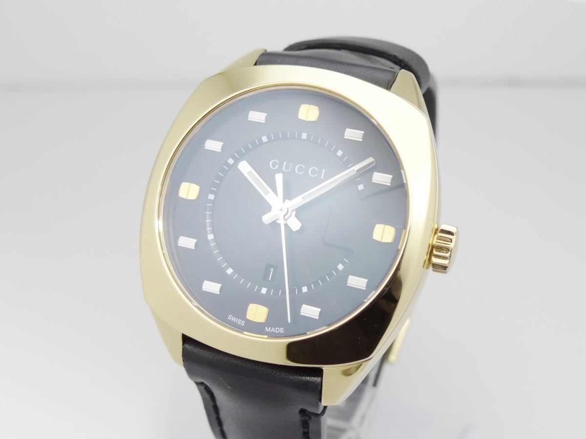 - ★質屋★グッチ/クオーツ/レザーベルト/142.4/金色/男女兼用/ボーイズ/参考定価:17万/ケースサイズ:約36mm/YA142407↑