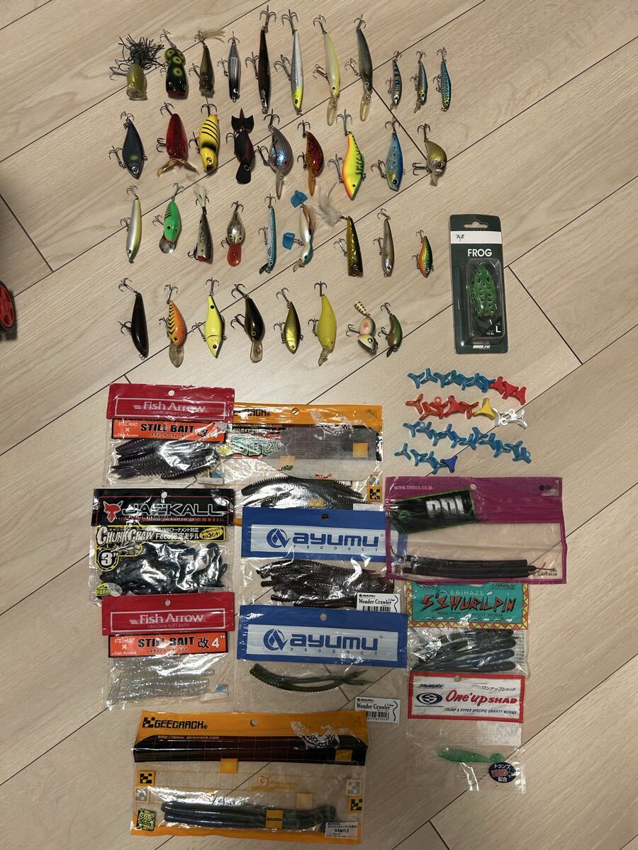 - ☆ほぼ未使用含む☆ ルアー+ワーム 51点(ルアーキャップ34個付き)