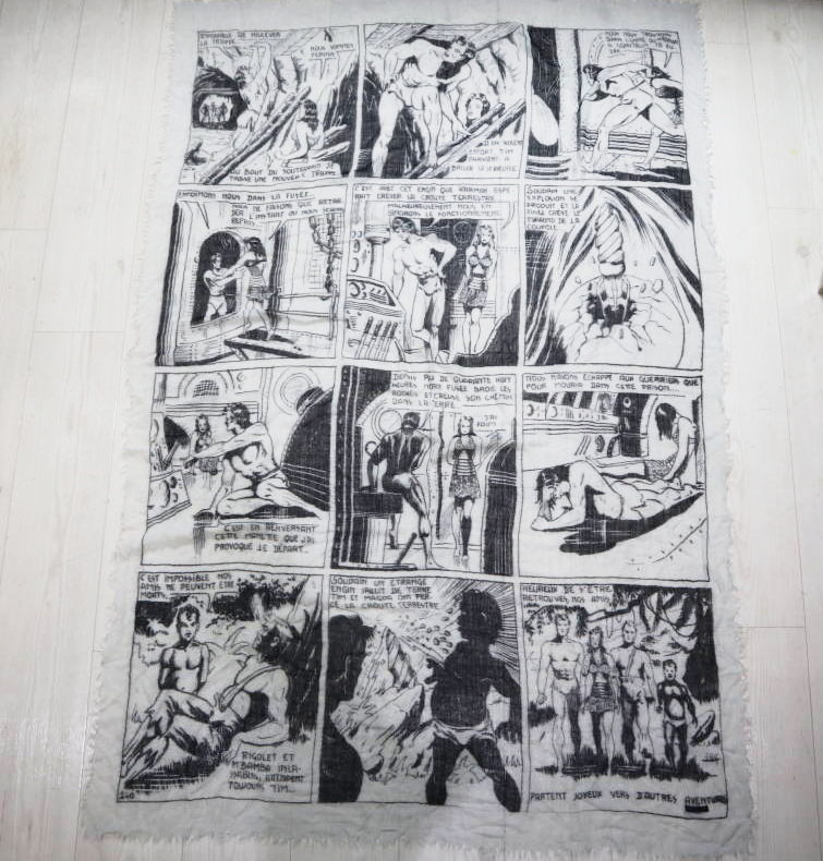 > FRANCO FERRARI フランコフェラーリ アートデザイン ウール/カシミア シースルー 大判ショール ブラック/ベージュ M08-k132