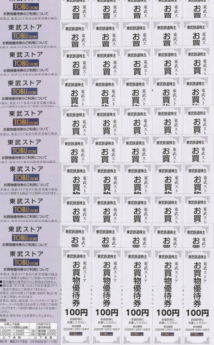 - 新着★送料85円~★東武鉄道株主★東武ストア★お買物優待券★10シート(50枚組)★即決
