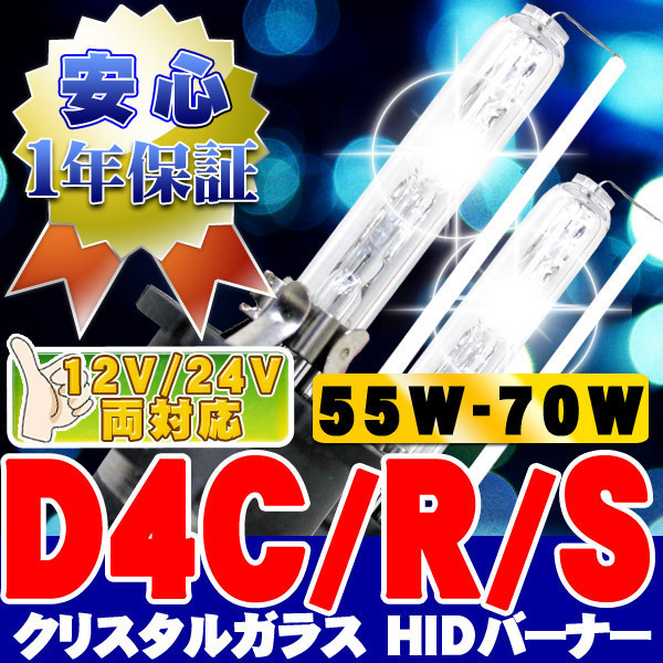 > HIDバーナー 55W-70W D4C/R/S 10000K D4専用アダプター付き 12V/24V 左右セット UVカット加工 石英ガラス ヘッドライト/フォグランプ